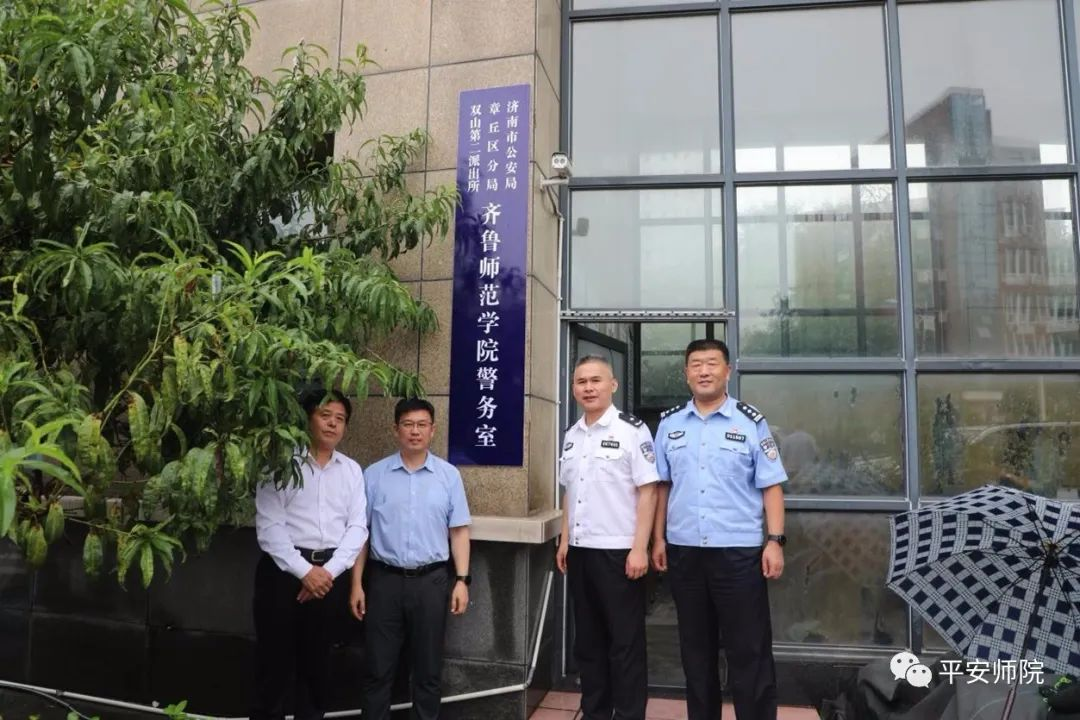 8月10日上午,我校举行“齐鲁师范学院警务室”揭牌仪式。济南市公安局经济文化保卫支队支队长朱容海,学校党委委员、副校长李伯伟共同为“齐鲁师范学院警务室”揭牌。章丘区公安分局、双山第二派出所有关负责人,学校党委保卫工作部部长、安全管理处处长贾国斌,党委办公室副主任、校长办公室副主任李萧等相关人员参加揭牌仪式。