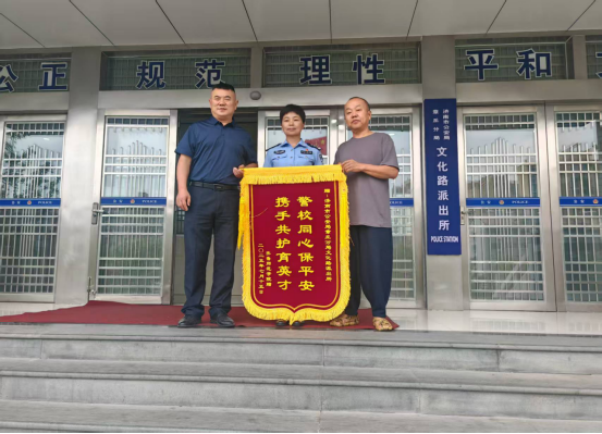 文化路派出所相关领导接受了锦旗,并表示:“保障校园安全是我们义不容辞的责任。未来,我们将继续加强与齐鲁师范学院的合作,不断创新工作方法,加大工作力度,为校园安全保驾护航,共同为师生们创造更加和谐、美好的学习和工作环境。”