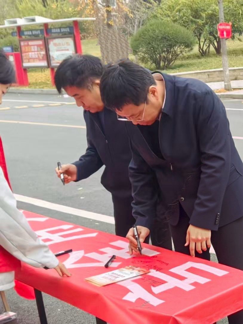 为深入学习贯彻习近平总书记关于应急管理重要论述和消防工作重要指示批示精神,全面落实国务院安委办、国家消防救援局及省、市消防安全指挥部关于2025年消防宣传月活动的部署要求,11月7日,我校举行“全民消防、生命至上——安全用火用电”主题消防宣传月活动启动仪式暨签名活动。学校党委副书记、校长郑秀文、党委副书记赵敏、副校长张兆明、副校长孙洪兆到场指导并参与签名活动。
