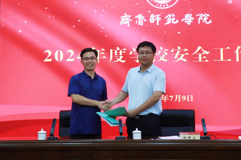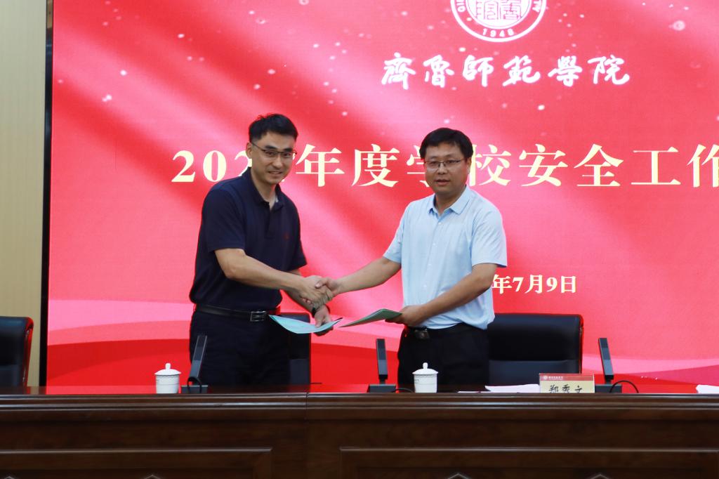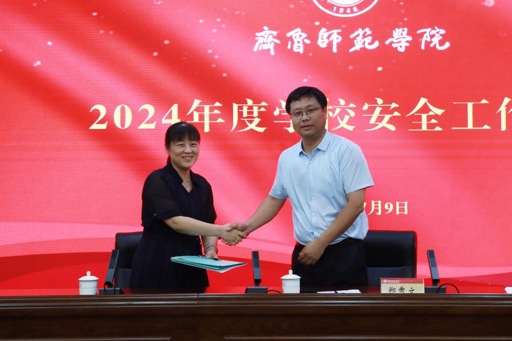 会上,郑秀文分别与各部门、学院负责人代表签订了《学校治安综合治理目标责任书》和《校园消防安全管理目标责任书》。