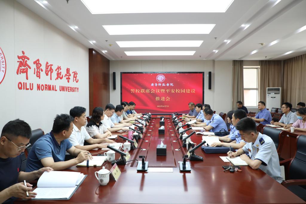 为进一步夯实警校联动机制,深化警校共建及驻校民警工作,切实维护校园及周边良好的治安秩序,共同创建安全、文明、和谐的平安校园,6月7日上午,齐鲁师范学院在章丘校区图书馆第二会议室召开警校联席会议暨平安校园建设推进会。校党委书记林松柏出席会议并讲话,校党委委员、副校长李伯伟,相关职能部门负责人参加会议。会议还特别邀请了章丘区公安分局治安大队、刑警大队、交警大队、网警大队,双山第二派出所、章丘区消防救援大队、山东振邦保安服务有限责任公司等相关单位负责人参加。会议由李伯伟主持。