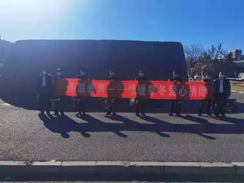 2021年11月11日上午,高联教育考研培训中心吴征伟经理,为振邦保安公司三大队三中队驻齐鲁师范学院执勤点全体队员捐赠防寒服“情暖寒冬,爱心捐赠”。安全管理处综合科科长孟兆勇参加活动。