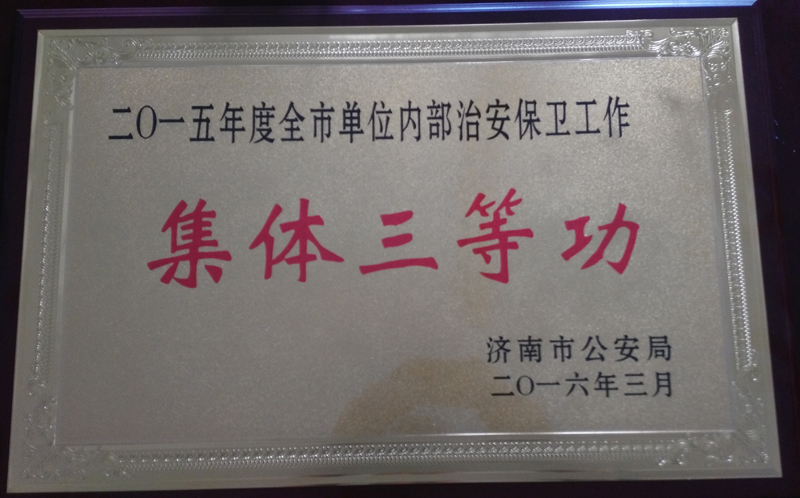我校保卫处在2015年度保卫工作中创新工作思路、积极创建平安校园,因业绩突出,被济南市公安局授予集体三等功,同时韩玉柱同志也获得个人嘉奖。
