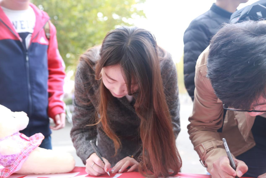 此次活动不仅吸引了许多学生的驻足关注,还得到了广大老师们的大力支持——老师和同学纷纷在宣传横幅上郑重地写下了自己的名字,力争做消防安全的宣传者、践行者。