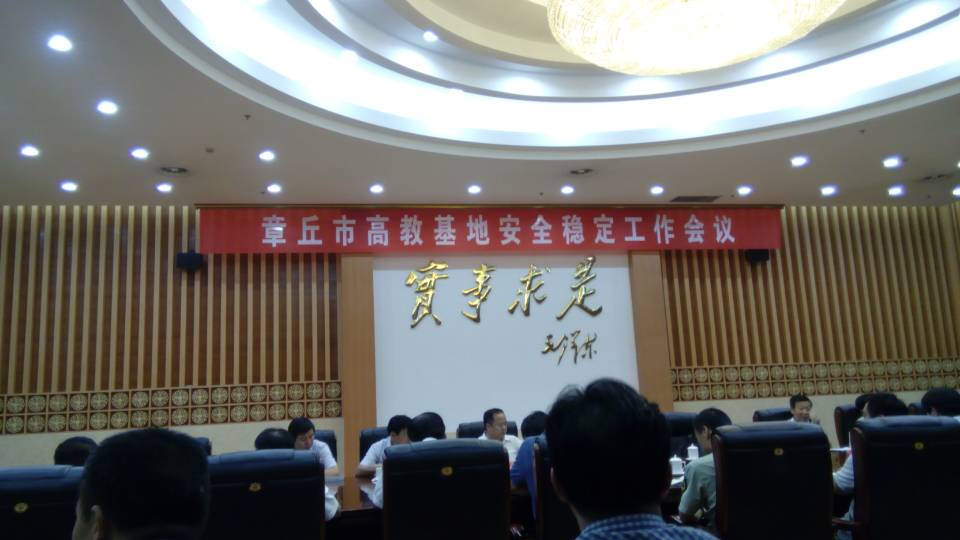 9月21日,章丘市召开高教基地安全稳定工作会议。市领导刘天东、王斌、李宝燕出席。我校保卫处处长王信山同志、治安科科长李健同志应邀参加会议。