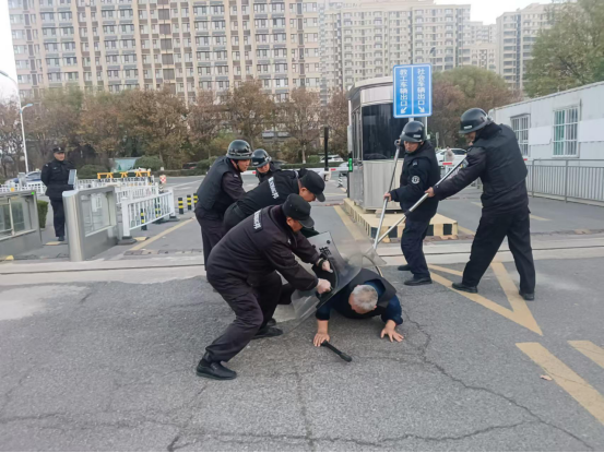 为落实省教育厅加强校园安全工作的有关要求,全面提升全体保安反恐防暴意识,应对突发事件能力,营造校园安全稳定工作环境,2024年11月21日,安全管理处联合山东振邦保安服务有限责任公司组织我校全体安保人员开展了反恐防暴专项演练。