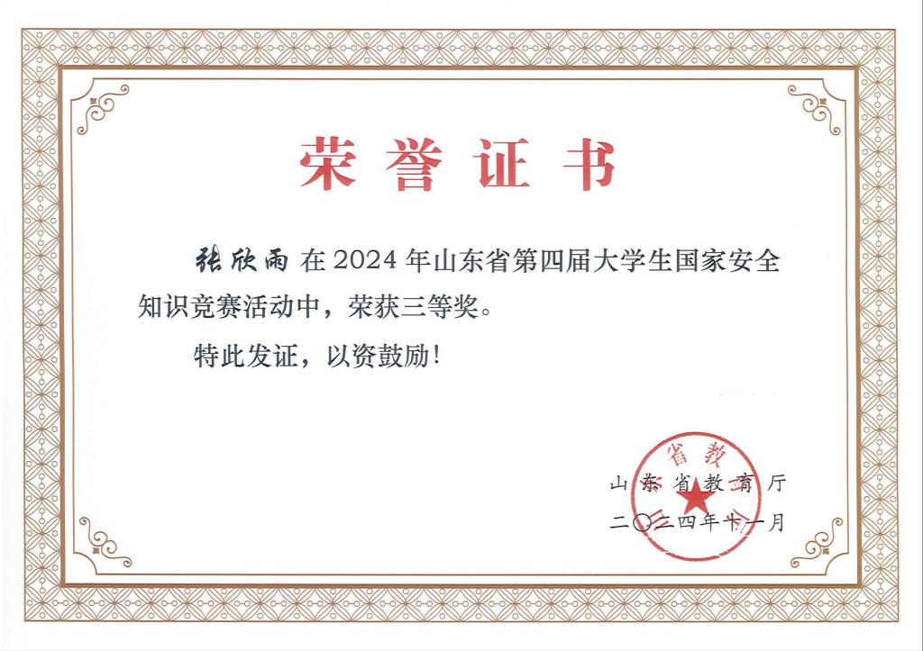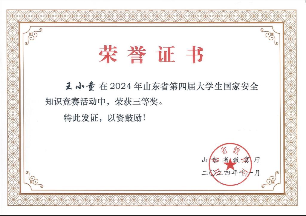 近日,教育厅组织开展了山东省第四届大学生国家安全知识竞赛和国家安全宣传教育优秀情景剧、优质课评选活动。经过初赛、复赛和决赛,确定山东省第四届大学生国家安全知识竞赛获奖单位16个,个人奖600名,其中一等奖100名、二等奖200名、三等奖300名,优秀指导老师35名。其中,我校生命科学学院张欣雨、音乐学院曲茗华、学前教育王小童三名同学在本次竞赛活动中荣获三等奖。