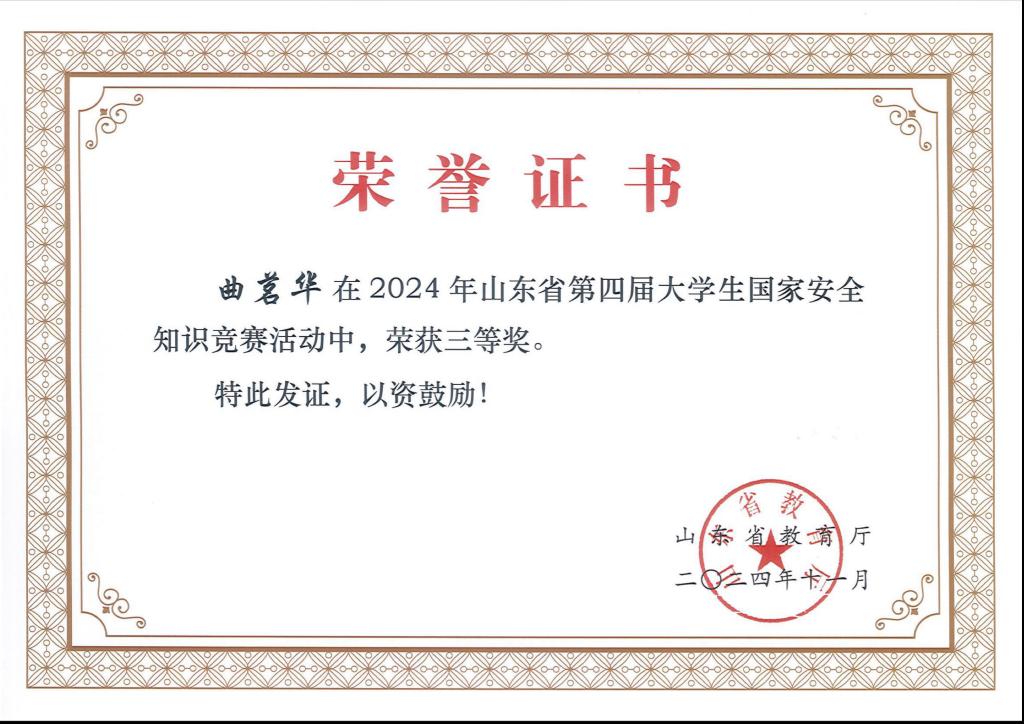 喜报!齐鲁学院学子在山东省第四届大学生国家安全知识竞赛中获佳绩